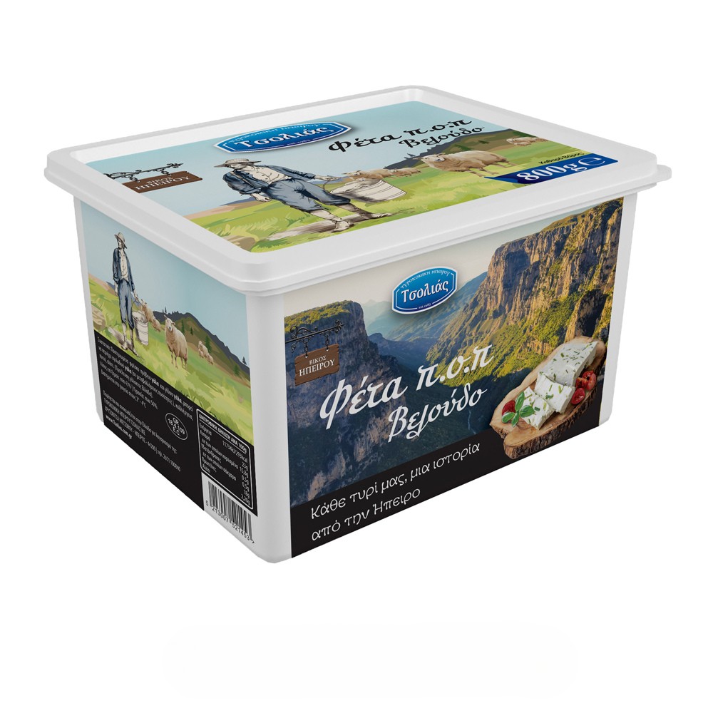 - 400g Φέτα Τυρί ΠΟΠ Βελούδο Τσολιάς σε 2 κομμάτια