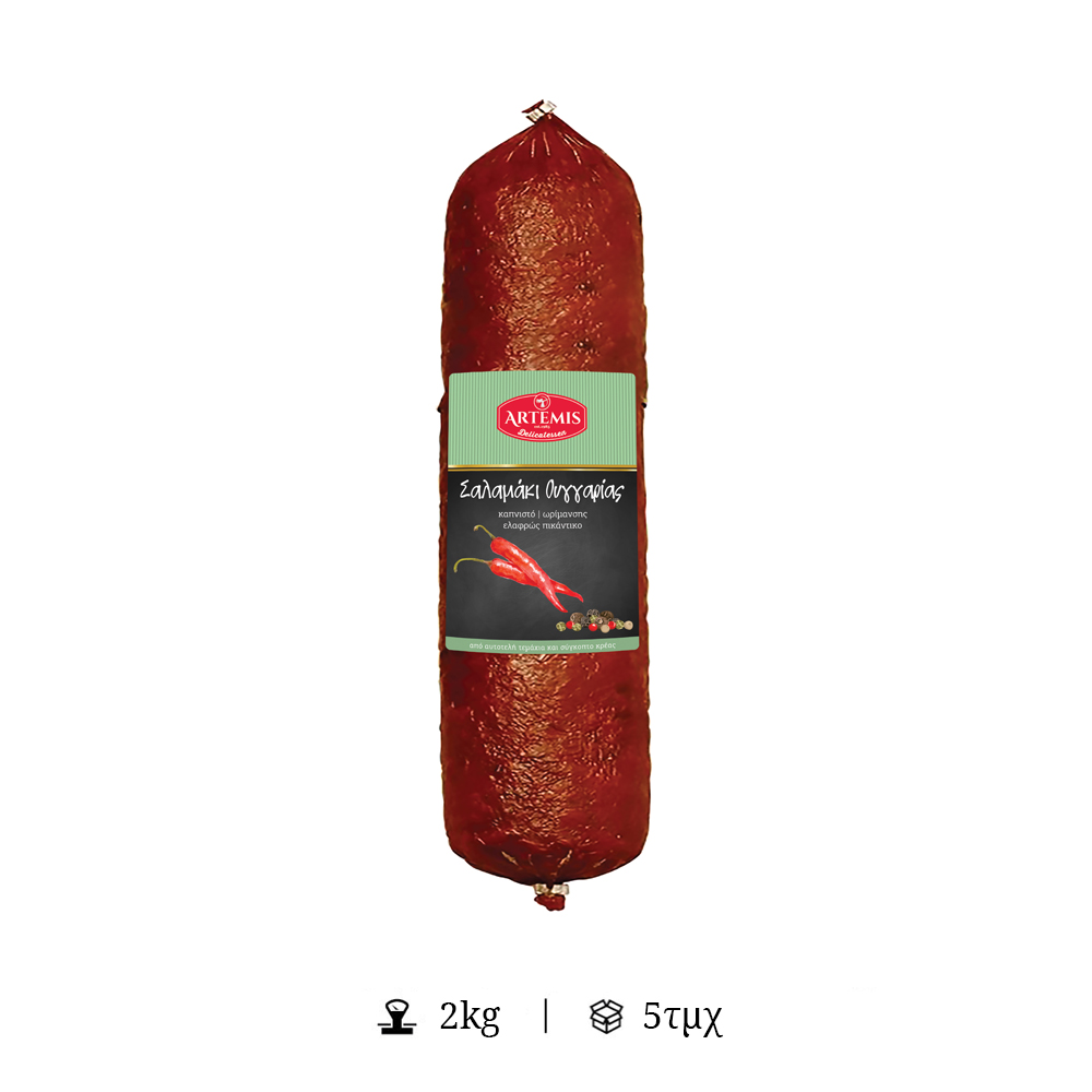 Το Σαλάμι Ουγγαρίας Πικάντικο – ΑΡΤΕΜΙΣ ξεχωρίζει για την πλούσια, καπνιστή γεύση και τη διακριτική πικάντικη ένταση. Ιδανικό για platters, σάντουιτς και συνοδευτικά, προσφέρει αυθεντική απόλαυση σε κάθε φέτα.
